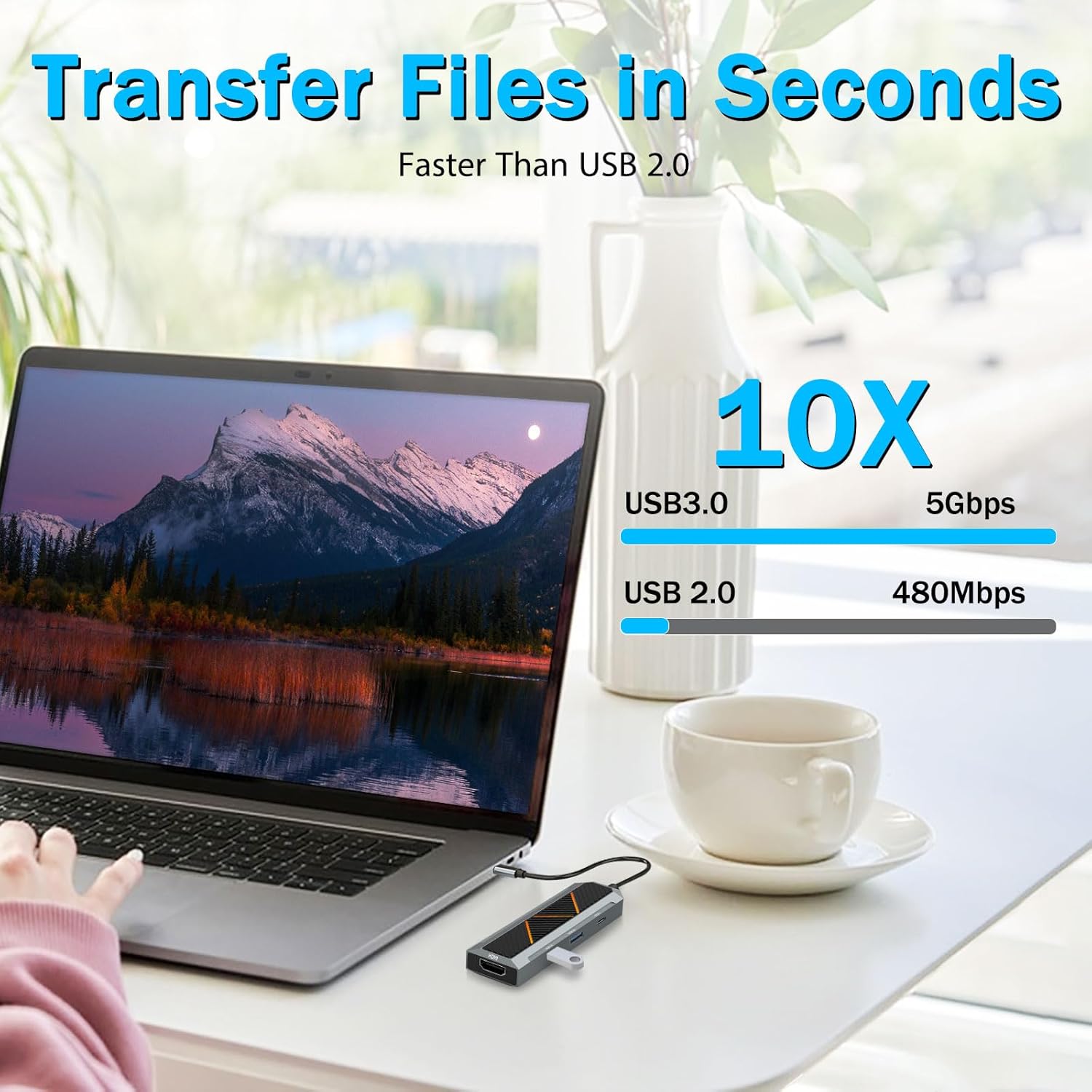 Truyền dữ liệu tốc độ cao đảm bảo chia sẻ tệp và liên lạc thiết bị hiệu quả, giúp Hub USB-C 4 trong 1 với Bộ chia HDMI 4K 60Hz phù hợp cho cả môi trường làm việc văn phòng và sáng tạo.