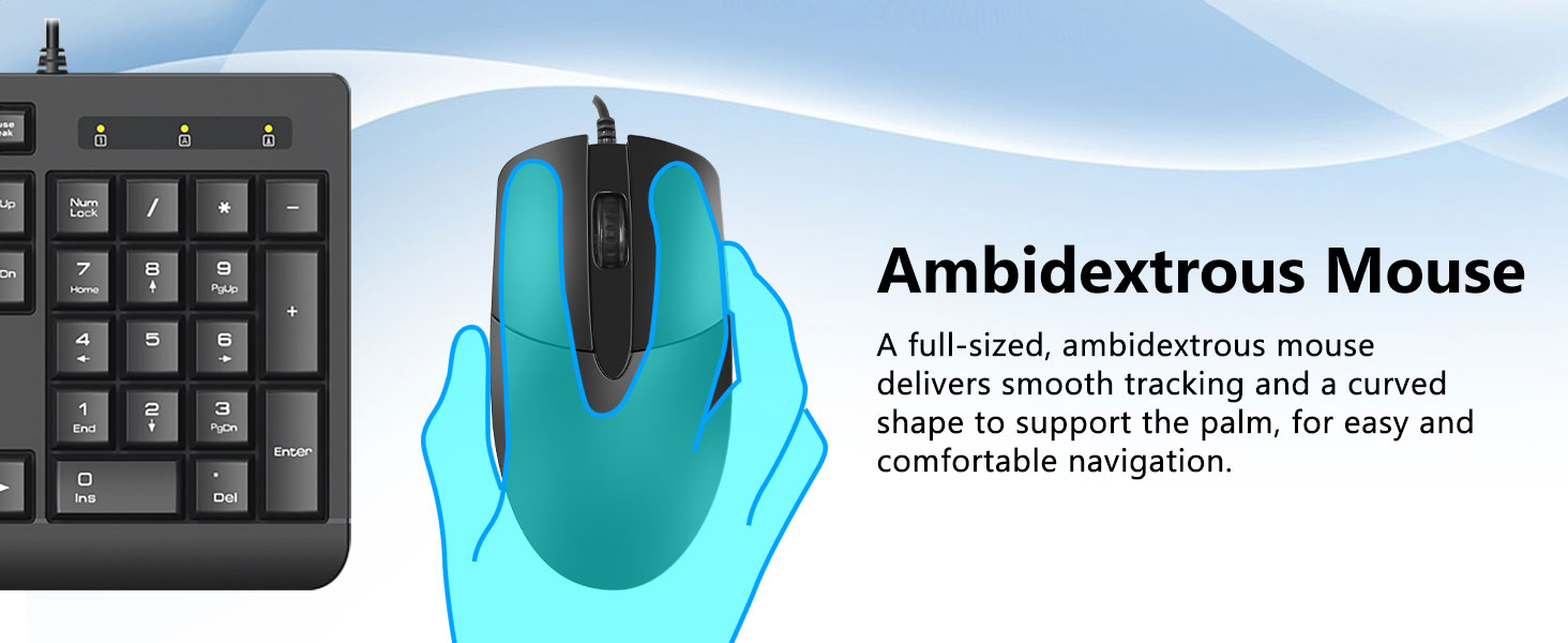 Chuột đi kèm có cảm biến quang học đáng tin cậy giúp theo dõi con trỏ chính xác. Điều này cho phép người dùng điều hướng tài liệu, trang web và ứng dụng một cách trơn tru.
