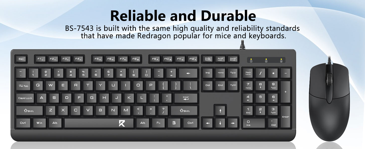 Combo Bàn phím và Chuột có dây BC7543 màu đen có bố cục bàn phím kích thước đầy đủ tiêu chuẩn, bao gồm bàn phím số chuyên dụng. Bố cục này lý tưởng cho các tác vụ văn phòng như nhập dữ liệu, công việc tài chính và quản lý bảng tính.