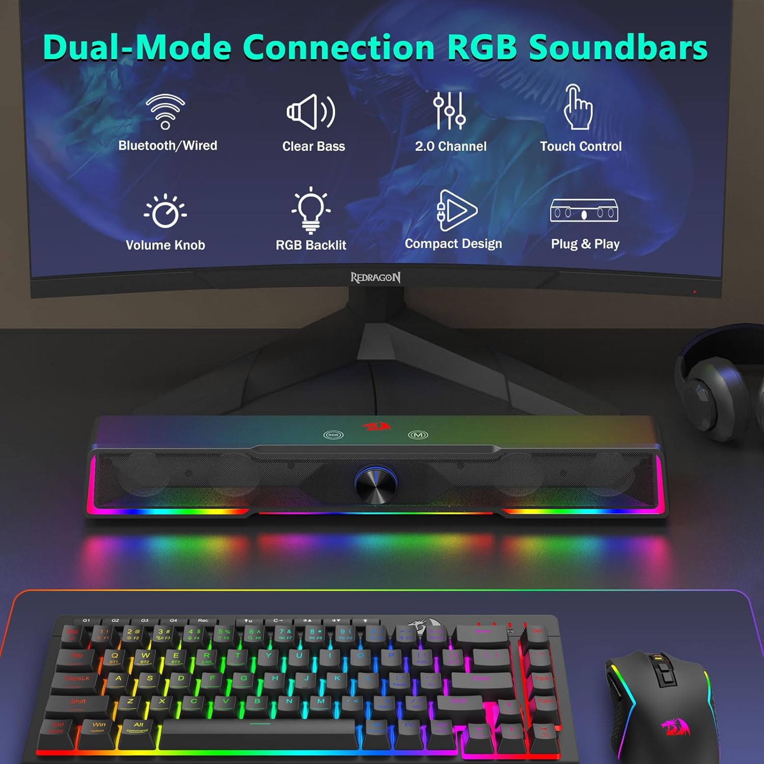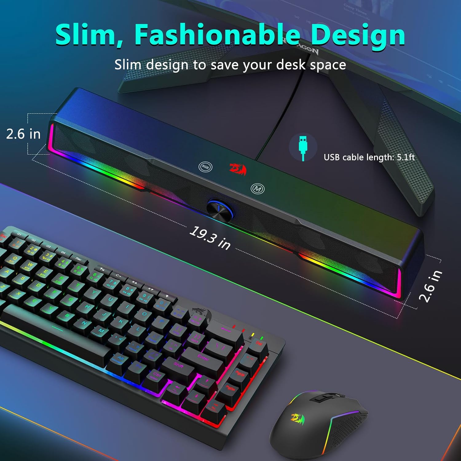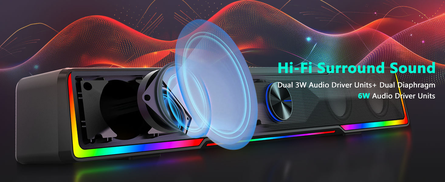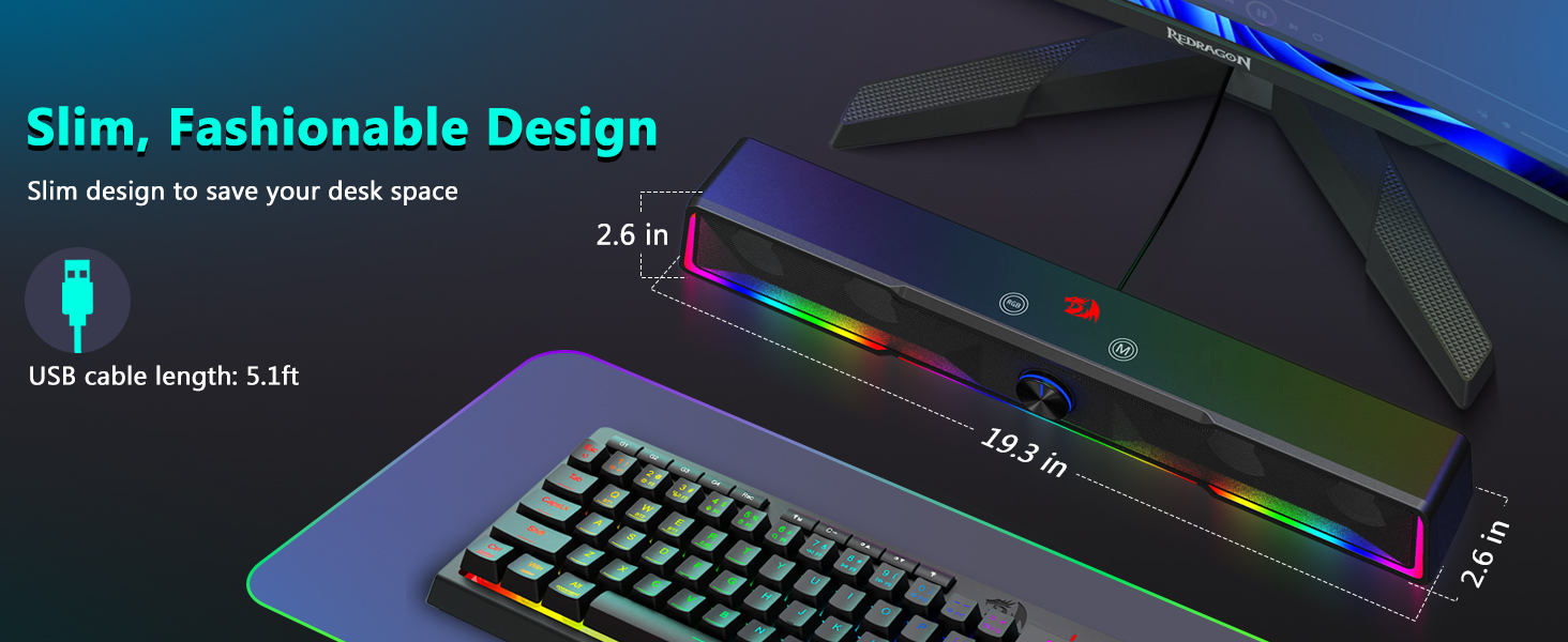 Cấu trúc soundbar tích hợp cho phép loa phân bổ âm thanh đồng đều khắp khu vực bàn làm việc, tạo ra trường âm thanh rộng hơn so với các loa compact truyền thống. Thiết kế này nâng cao trải nghiệm nghe nhạc, phim, chơi game và họp trực tuyến.