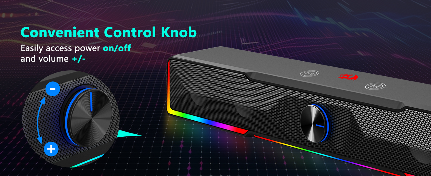 Một tính năng chính của Loa máy tính có núm âm lượng kết nối có dây Bluetooth/USB GS516 màu đen là điều khiển núm âm lượng trực quan. Vòng quay vật lý này cho phép người dùng nhanh chóng điều chỉnh mức âm thanh mà không cần điều hướng cài đặt phần mềm.