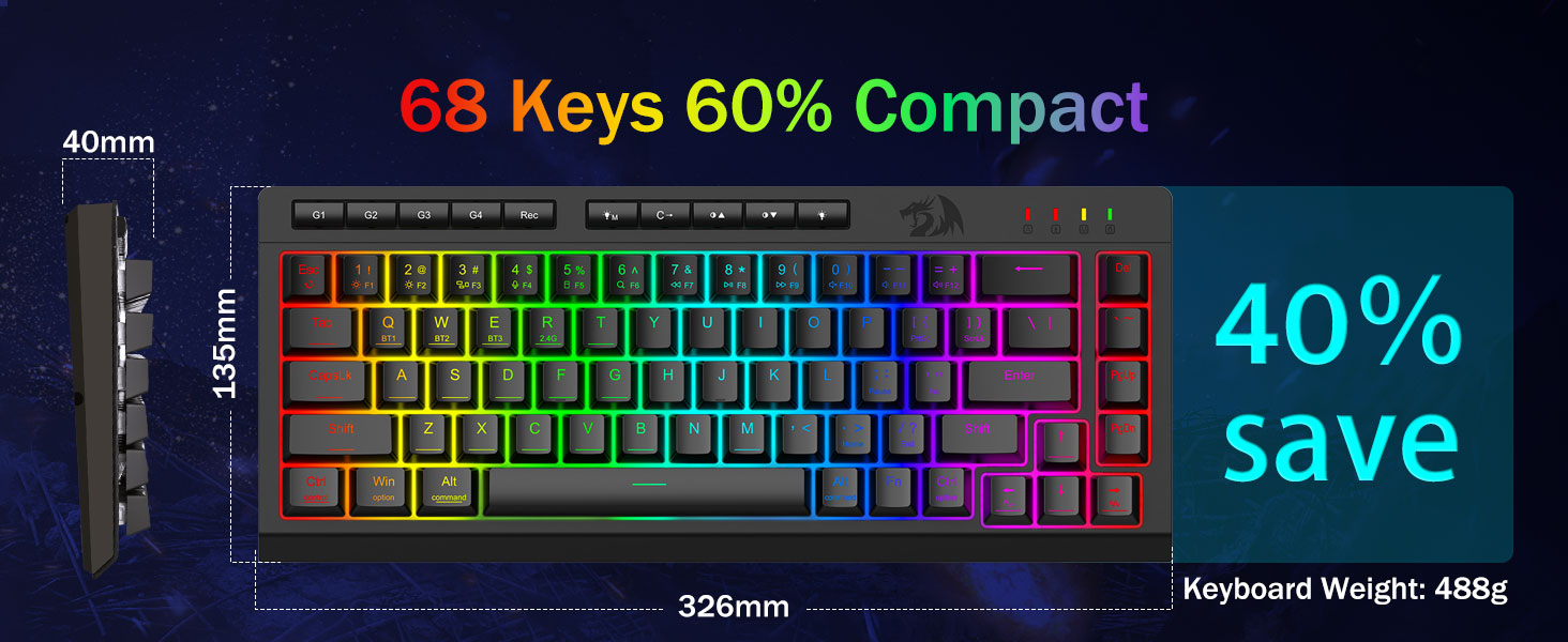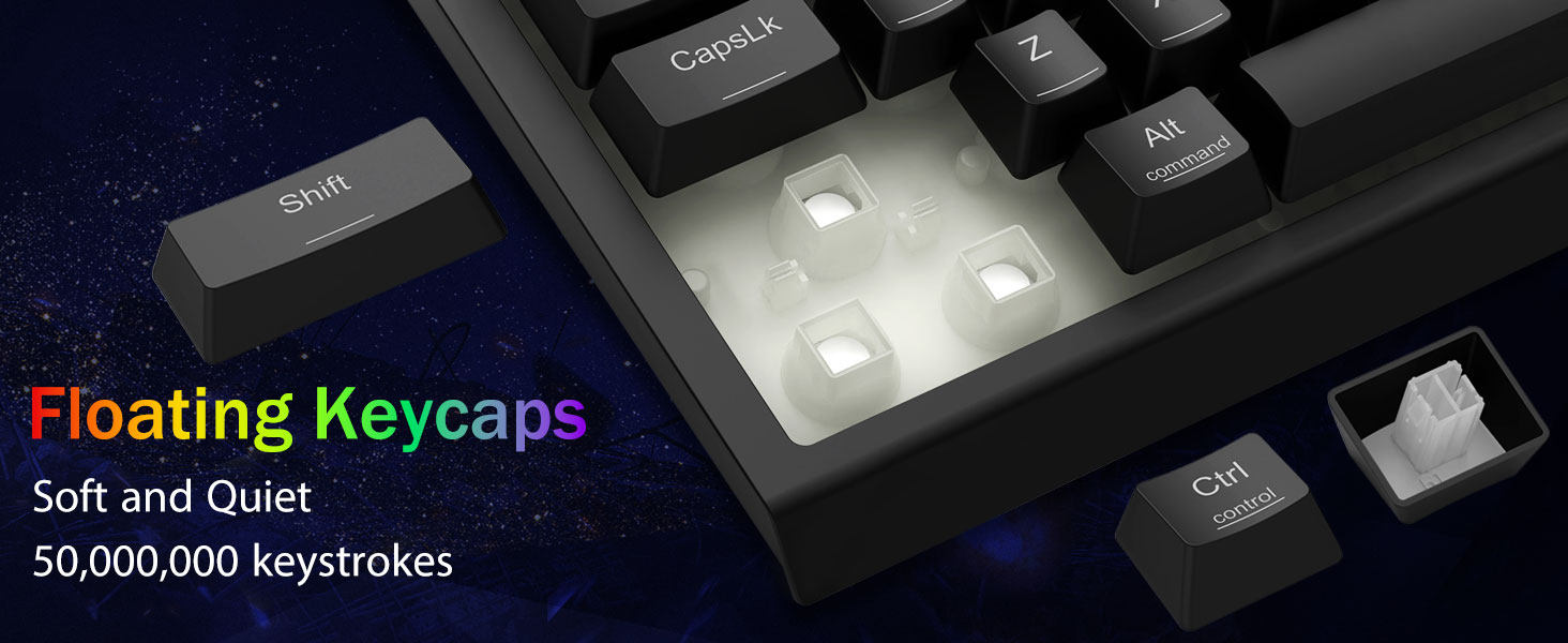 Ánh sáng RGB đắm chìm và không gian có thể tùy chỉnh -Giải phóng 16,8 triệu màu RGB với 8 chế độ cài sẵn (Rainbow Wave, Reactive Typing) + 6 cấu hình DIY. Điều chỉnh độ sáng từ chế độ rực rỡ sang chế độ ẩn—lý tưởng để chơi game vào đêm khuya hoặc sử dụng văn phòng.