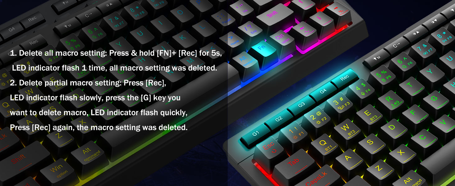 Macro có thể tùy chỉnh, điều khiển dễ dàng -Lập trình ngay lập tức 4 phím macro tích hợp (G1-G4)—không cần phần mềm. Ghi lại các tổ hợp phức tạp để chơi game, các phím tắt để tăng năng suất hoặc các lệnh đa phương tiện. Xác định lại quy trình làm việc của bạn trong vài giây. Bạn cũng có thể sử dụng phần mềm để tùy chỉnh chức năng, tạo macro, điều chỉnh đèn RGB và đặt phím tắt. Link phần mềm: bit.ly/K524RGB-PRODriver