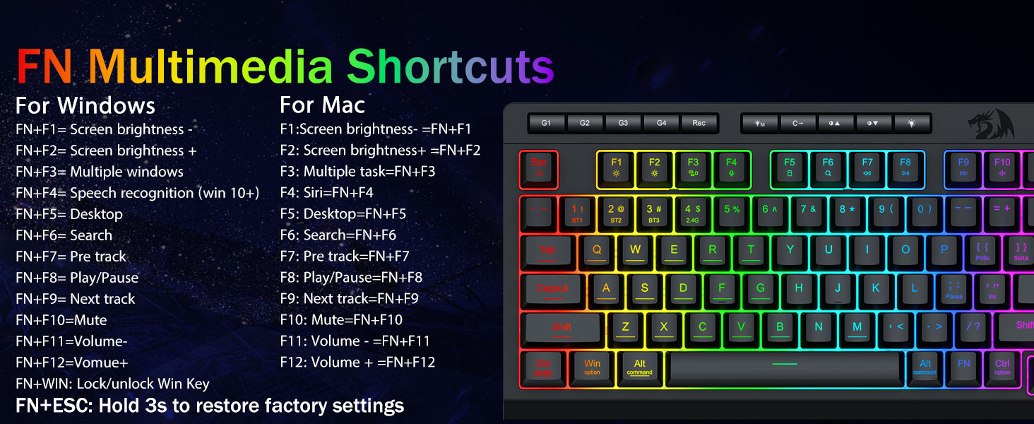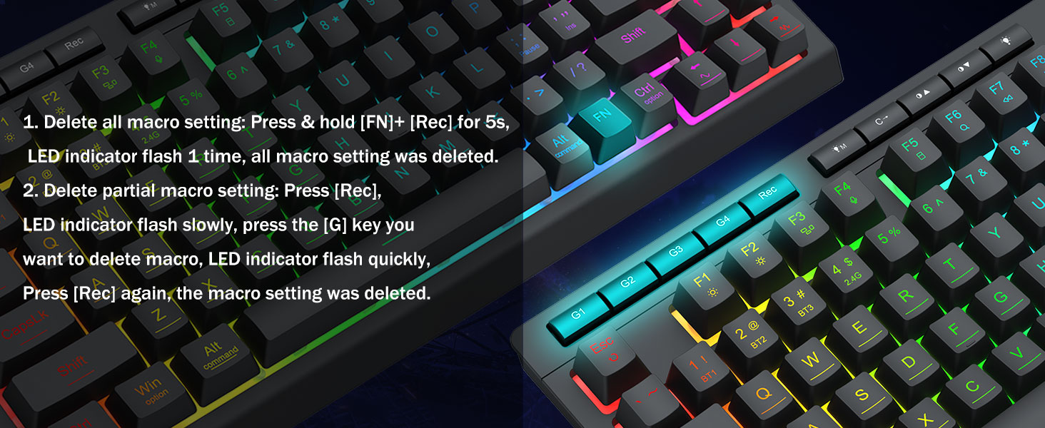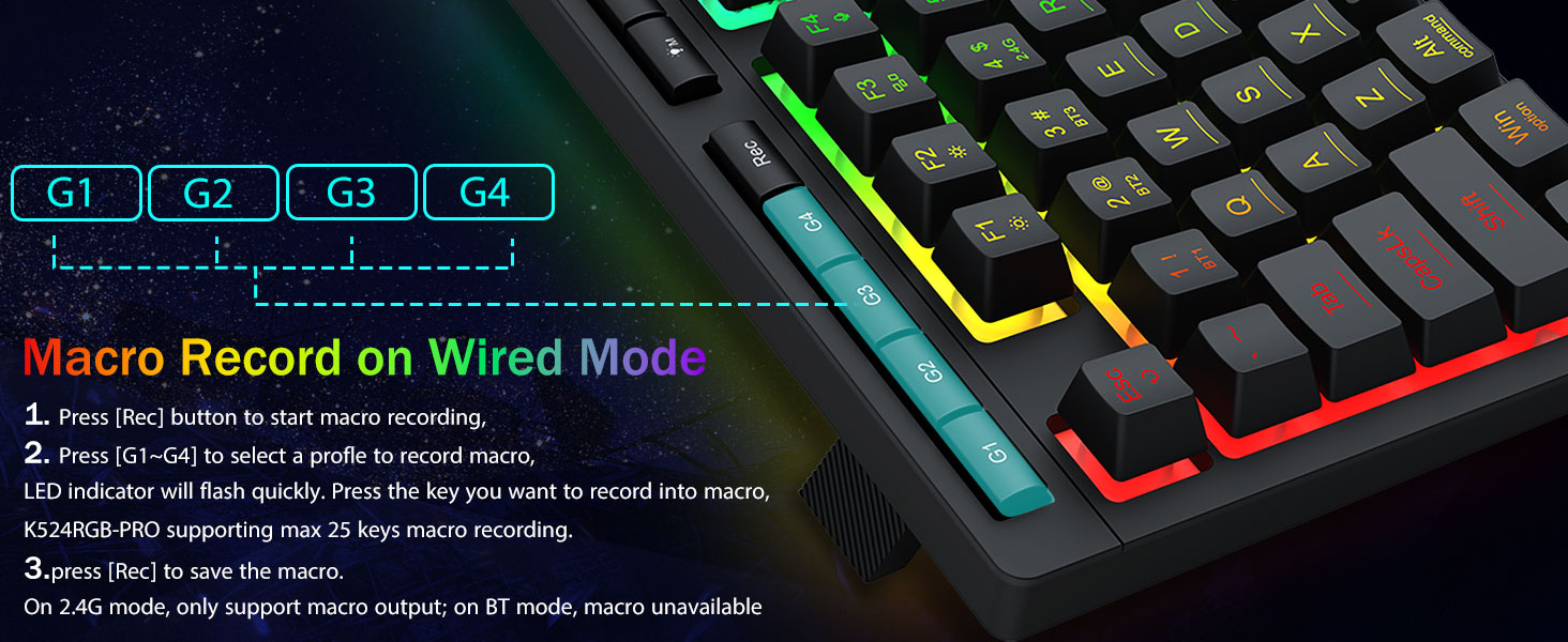 Macro có thể tùy chỉnh, kiểm soát dễ dàng- Lập trình ngay lập tức 4 phím macro tích hợp (G1-G4)—không cần phần mềm. Ghi lại các tổ hợp phức tạp để chơi game, các phím tắt để tăng năng suất hoặc các lệnh đa phương tiện. Xác định lại quy trình làm việc của bạn trong vài giây. Bạn cũng có thể sử dụng phần mềm để tùy chỉnh chức năng, tạo macro, điều chỉnh đèn RGB và đặt phím tắt.