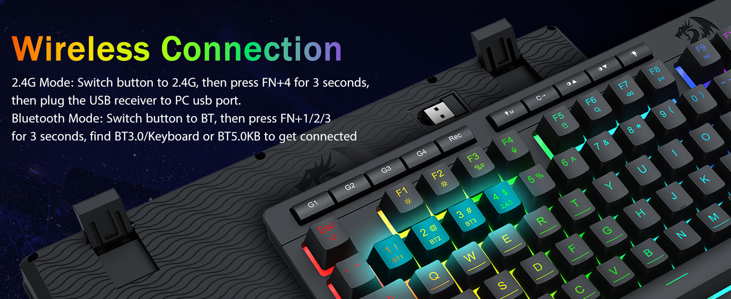 Tính linh hoạt của ba chế độ và khả năng làm chủ đa thiết bị- Chuyển đổi liền mạch giữa các chế độ Bluetooth 5.0, không dây 2.4GHz hoặc có dây USB-C, kết nối đồng thời tối đa 5 thiết bị (PC, Mac, máy tính bảng, điện thoại, PS/XBOX).