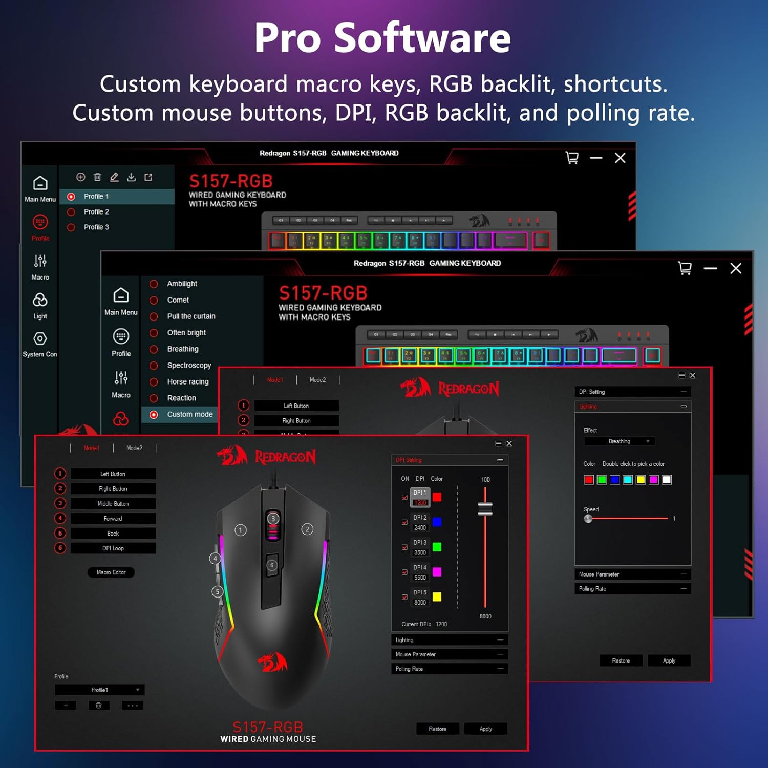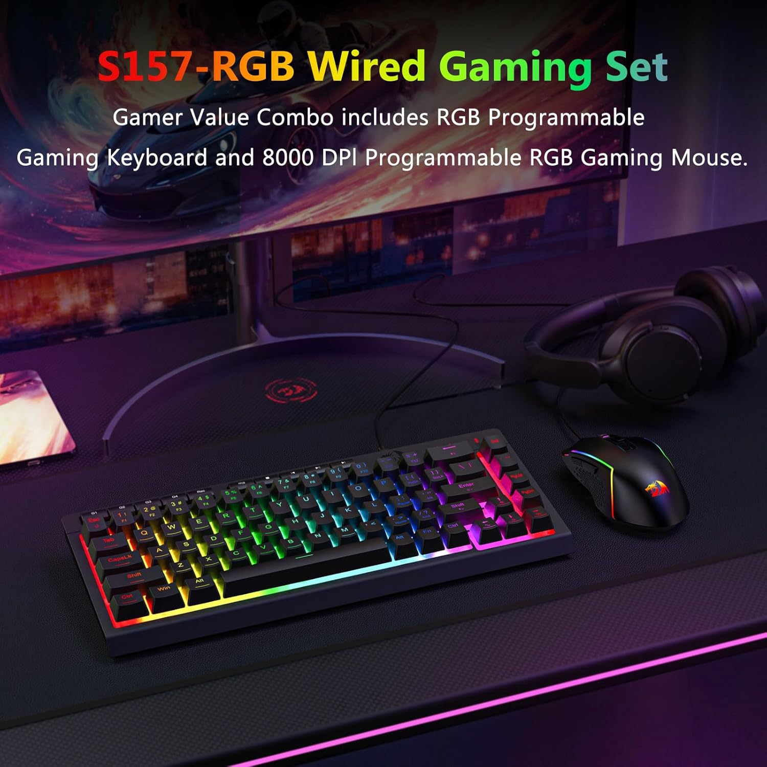 Combo Bàn phím và Chuột chơi game có dây có đèn nền RGB S157 màu đen mang lại hiệu suất ổn định trong nhiều tình huống khác nhau. Bàn phím hỗ trợ gõ phím chính xác, trong khi chuột cung cấp khả năng theo dõi đáng tin cậy để điều hướng và chơi trò chơi.