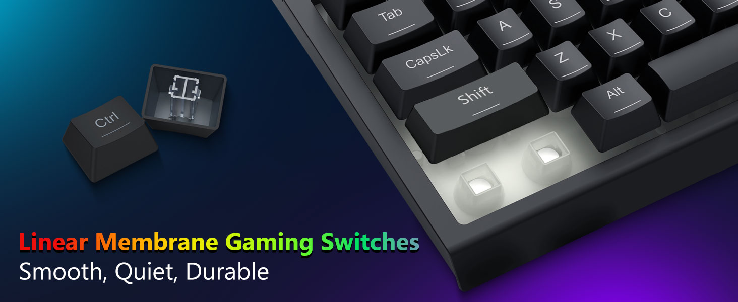 Các phím được thiết kế để cung cấp phản hồi nhất quán và hoạt động cân bằng. Điều này đảm bảo gõ chính xác và đầu vào đáng tin cậy trong khi chơi game hoặc sử dụng văn phòng.