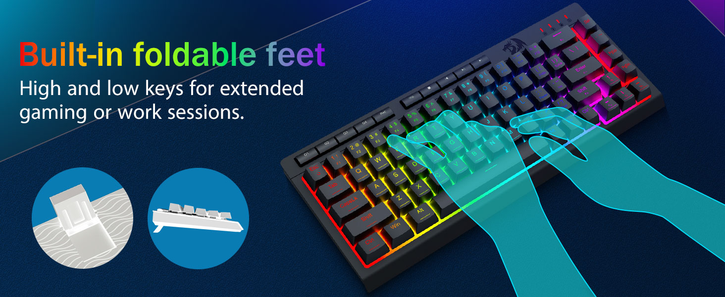 Keycaps được thiết kế để có độ bền và kết cấu nhất quán, giúp duy trì sự thoải mái trong thời gian dài. Ánh sáng RGB được phân bố đồng đều, cải thiện khả năng hiển thị mà không bị phân tâm.
