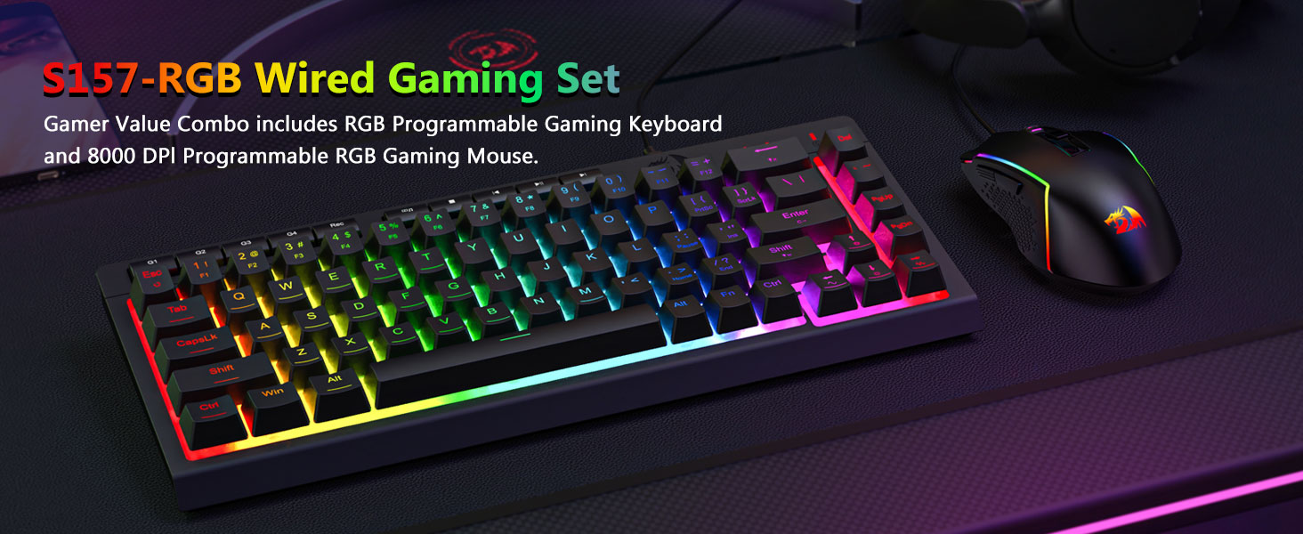 Thẻ nóng: Combo bàn phím và chuột chơi game có dây có đèn nền S157 RGB màu đen, Trung Quốc, Nhà sản xuất, Nhà cung cấp, Nhà máy