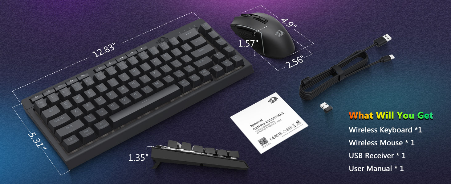 Combo Bàn phím và Chuột chơi game không dây S157 màu đen của Redragon, được chế tạo một cách chuyên nghiệp bởi nhà sản xuất chuyên nghiệp Chuangquan, được thiết kế để nâng cao trạm chơi game của bạn cả về hiệu suất và kiểu dáng. Bàn phím mang lại phản hồi xúc giác thỏa mãn, lý tưởng cho cả khi chơi game cường độ cao và thời gian gõ phím kéo dài, trong khi chuột đảm bảo độ chính xác tuyệt đối với cài đặtDPI có thể điều chỉnh để kiểm soát trong trò chơi vượt trội. Cả hai thành phần đều được trang bị đèn nền RGB quyến rũ, cho phép bạn tùy chỉnh không gian thiết lập của mình với nhiều màu sắc và hiệu ứng động.