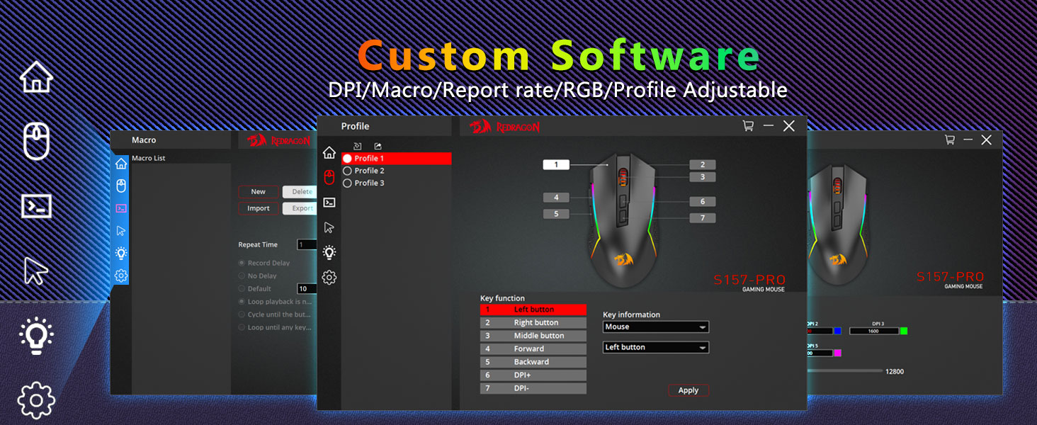 Tối đa 12800 dpi có thể điều chỉnh- Được trang bị 5 cấp độ dpi tích hợp cho phép ghi lại chuyển động chuột của bạn đến từng vị trí chính xác. 5 mức dpi miễn phí có thể tùy chỉnh bằng phần mềm, cho phép game thủ chuyển đổi nhanh chóng trong trò chơi.