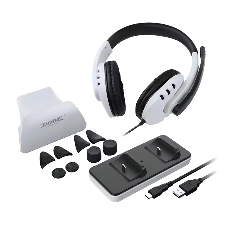 Bán buôn tùy chỉnh Bộ điều khiển trò chơi DOBE PS5 12 trong 1, bộ sạc ghế + tai nghe có dây + chân đế + nút kích hoạt + bộ nắp cần điều khiển