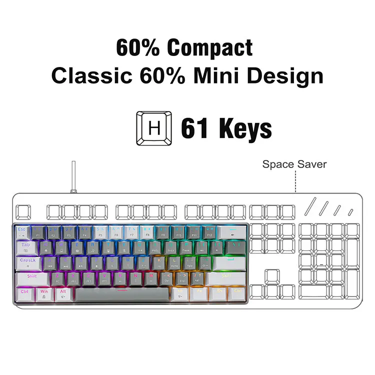 【Thiết kế di động bàn phím phần trăm] Trò chơi có dây cơ học 60% di động này có kích thước hoàn hảo và