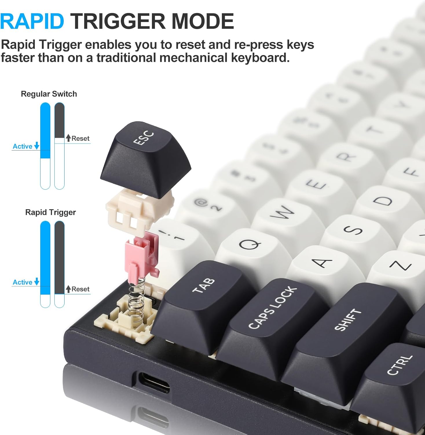 Chức năng kích hoạt nhanh cho phép các phím đặt lại ngay lập tức khi được nhả ra, thay vì phải chờ điểm đặt lại cố định. Điều này cho phép nhấn phím lặp lại nhanh hơn và điều khiển chính xác hơn, đặc biệt hữu ích trong các tình huống chơi game mang tính cạnh tranh như FPS hoặc các trò chơi dựa trên nhịp điệu.