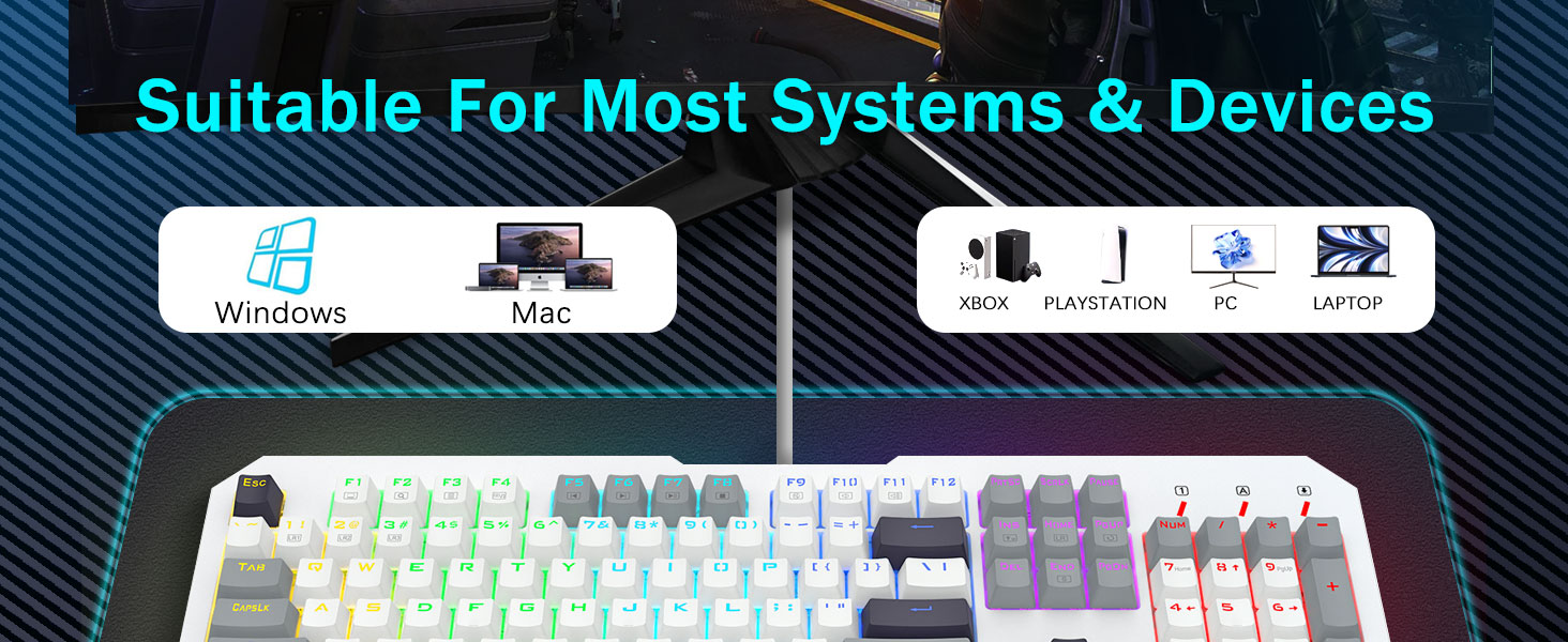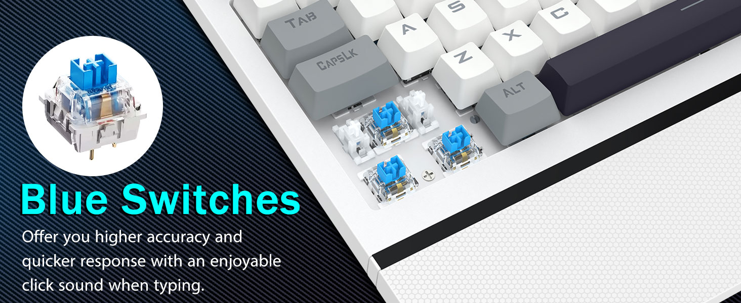 【Công tắc màu xanh phản hồi để gõ chính xác】Bàn phím PC của chúng tôi có các công tắc màu xanh nhấp nháy mang lại thời gian phản hồi nhanh như chớp và độ chính xác vượt trội. Mỗi lần nhấn phím tạo ra âm thanh nhấp chuột thỏa mãn, nâng cao trải nghiệm gõ phím của bạn. Với hành trình phím sâu hơn, phản hồi mạnh hơn và khoảng cách phím rộng hơn, việc gõ phím không chỉ chính xác hơn mà còn thoải mái hơn nhiều. Nếu bạn là người yêu thích cảm giác xúc giác, "clicky" thì bàn phím của chúng tôi là sự lựa chọn hoàn hảo cho bạn.