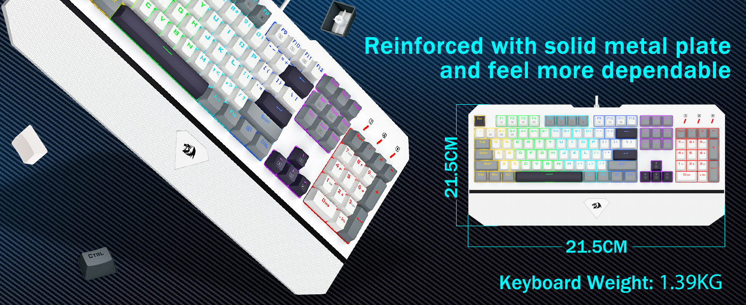 [Bàn phím kích thước đầy đủ 104 phím cao cấp]Được chế tạo bằng hợp kim kim loại cao cấp và chất liệu nhựa ABS, mặt bàn phím cực kỳ chắc chắn, có khả năng chống trầy xước. Đầu nối USB mạ vàng đảm bảo kết nối ổn định, đáng tin cậy để mang lại hiệu suất chơi game đỉnh cao. Với trọng lượng 1,39kg, bàn phím này cho cảm giác như một chiếc bình vững chắc trong tay bạn, mang lại sự ổn định vô song trong quá trình sử dụng.
