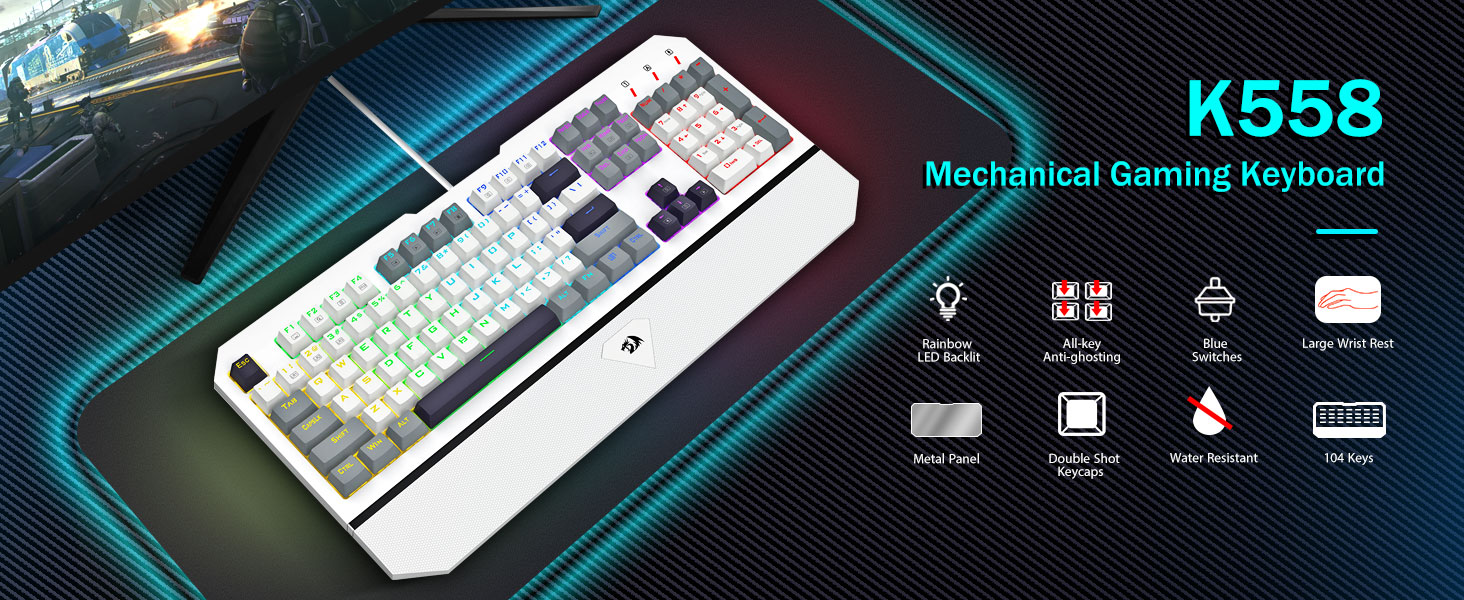 Thẻ nóng: Bàn phím cơ chơi game có dây 104 phím màu trắng K558, Trung Quốc, Nhà sản xuất, Nhà cung cấp, Nhà máy