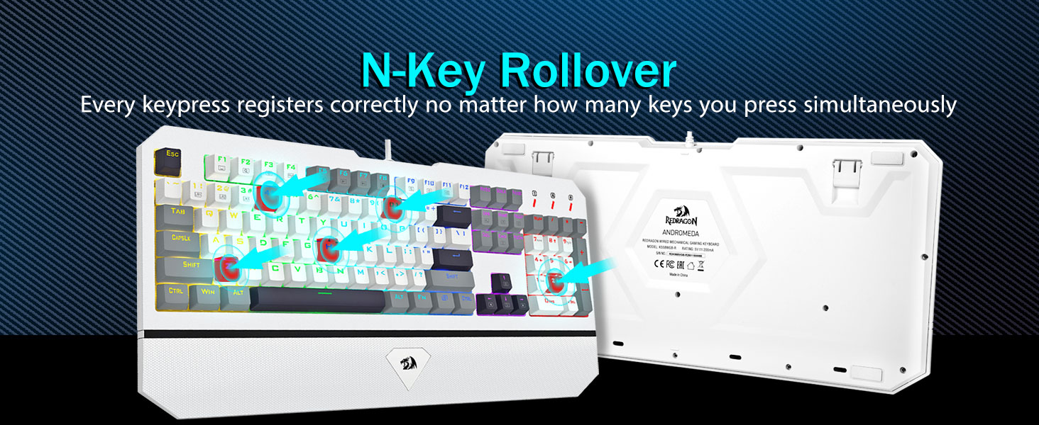 【100% Anti-Ghosting & 11 Phím tắt Đa phương tiện】Tận hưởng cảm giác gõ liền mạch với công nghệ chống bóng ma 100%, cho phép tất cả các phím đăng ký đồng thời, bất kể bạn gõ nhanh đến đâu. Với 11 phím tắt đa phương tiện, bạn có thể truy cập nhanh các chức năng như máy tính, điều khiển media, điều chỉnh âm lượng. Bàn phím chơi game cơ học K558, hoàn chỉnh với bàn phím số, giúp tăng năng suất của bạn. Tương thích với Windows 7/8/10/XP/VISTA/95/98/2000/ME và Mac OS, Xbox, v.v., bàn phím này có tuổi thọ lên tới 50 triệu lần nhấn phím.