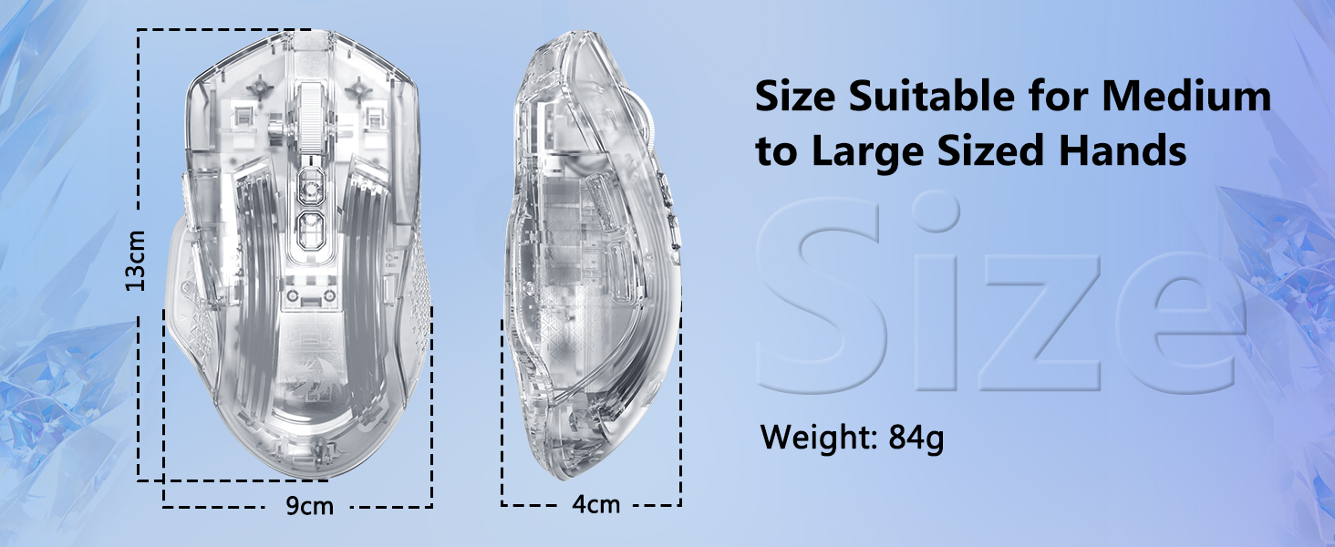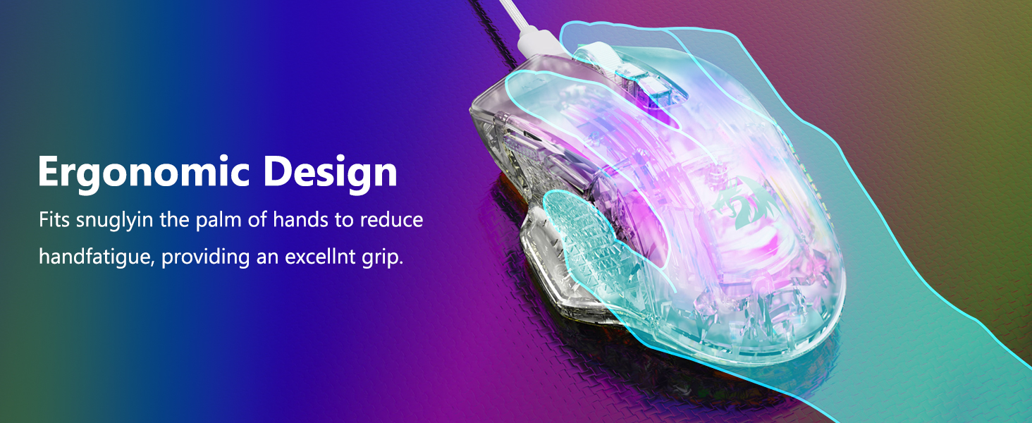 Chuột được thiết kế vừa vặn trong tay một cách tự nhiên, hỗ trợ sử dụng kéo dài mà không bị mỏi quá mức. Cấu trúc của nó cho phép mang lại các kiểu cầm nắm thoải mái, bao gồm kiểu cầm bằng lòng bàn tay, kiểu vuốt và kiểu cầm bằng đầu ngón tay.
