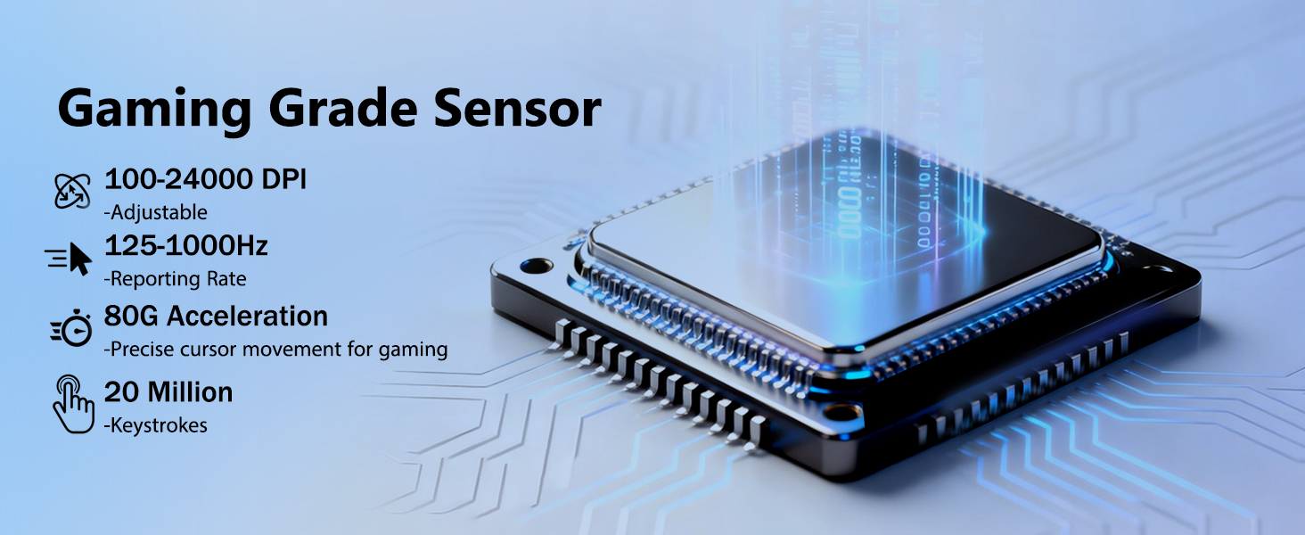 Chuột được trang bị cảm biến quang học tiên tiến có khả năng đạt tới 24.000 dpi. Điều này cho phép người dùng điều chỉnh độ nhạy theo các tình huống khác nhau, từ nhắm mục tiêu chính xác trong trò chơi đến di chuyển con trỏ nhanh trên màn hình lớn.